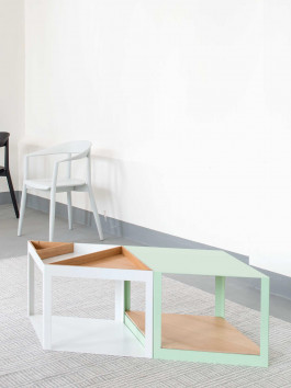 Karo is both designed piece and multifunctional system. Composed of many parts it is based on a single fragment diamond construction that can be combined to create entirely new geometric structures. Building on its versatile foundation, Karo evolves into a multifunctional system, that is easily adjusted to your needs; serving as occasional table, coffee table arrangement or even as a room partition.