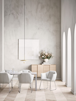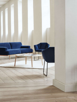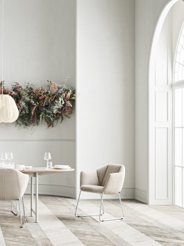 'For modern Japanese people, the kimono is a symbol of thoughtfulness, grace and respect for tradition, which is exactly where designer Pascal Bosetti has drawn his inspiration for Kimono. The similarities between the chair and its source of inspiration are particularly evident in the seams on the seat, which add both a graphic look and separate the arms and cover from each other – just like a real kimono. Kimono is moulded, and will therefore hold its characteristic curved shape for many years to come. The soft seat upholstery also means that your dinner parties will probably never make it into the living room.' - Bolia